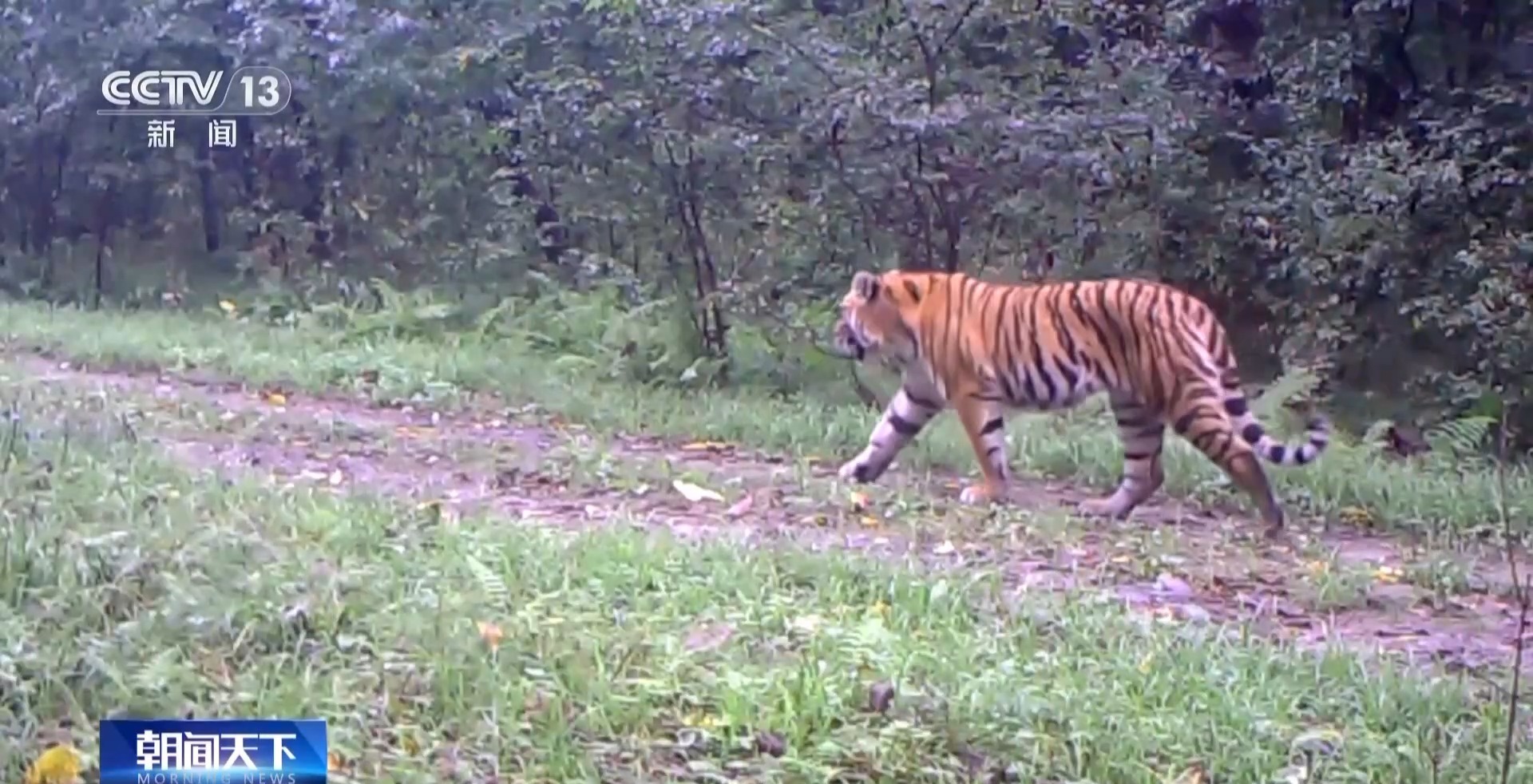 国家林草局东北虎豹监测与研究中心主任、北京师范大学生命科学学院教授 冯利民:这个视频是它带着第一胎幼崽外出出游的场景。总共有三只幼崽,这个时候它的幼崽已经接近半岁。